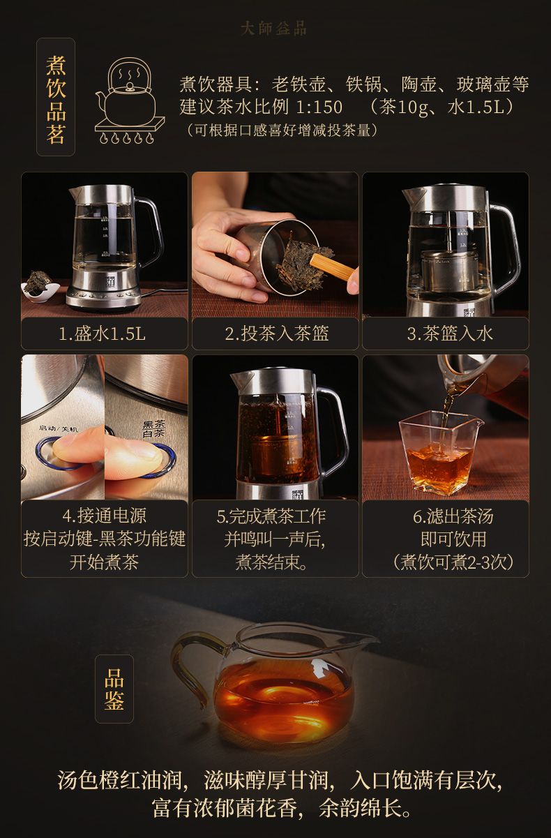 大師益品八年陳干兩茶餅安化黑茶白..