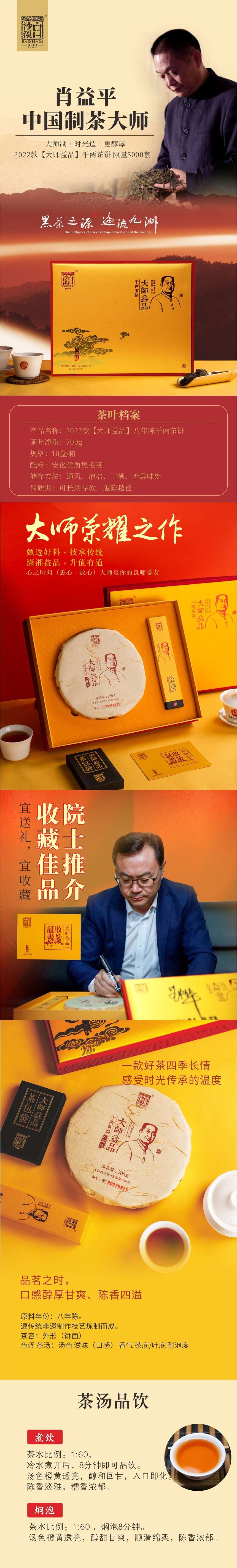大師益品八年陳干兩茶餅安化黑茶白沙溪