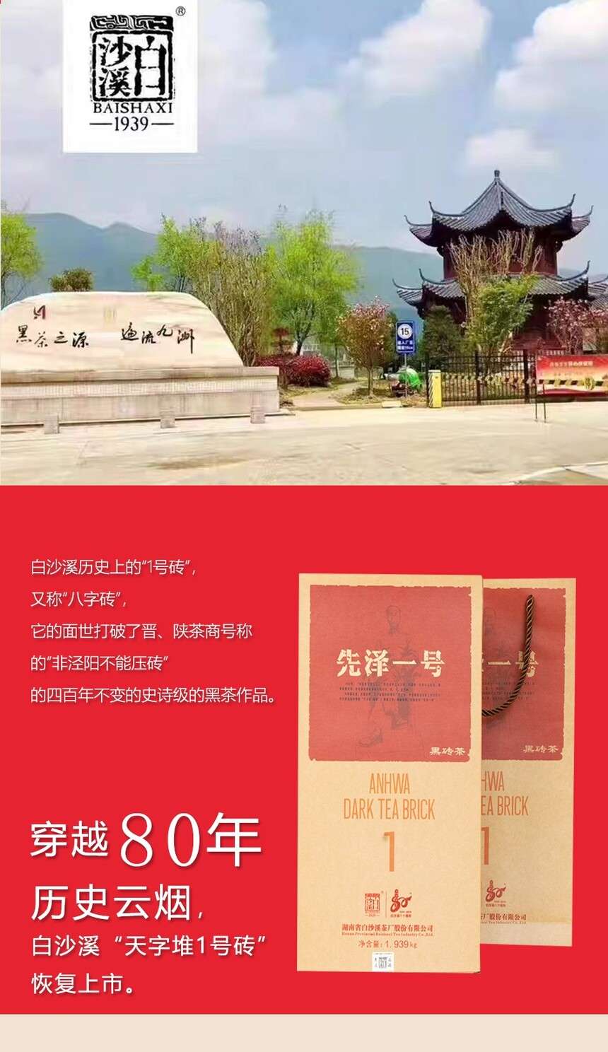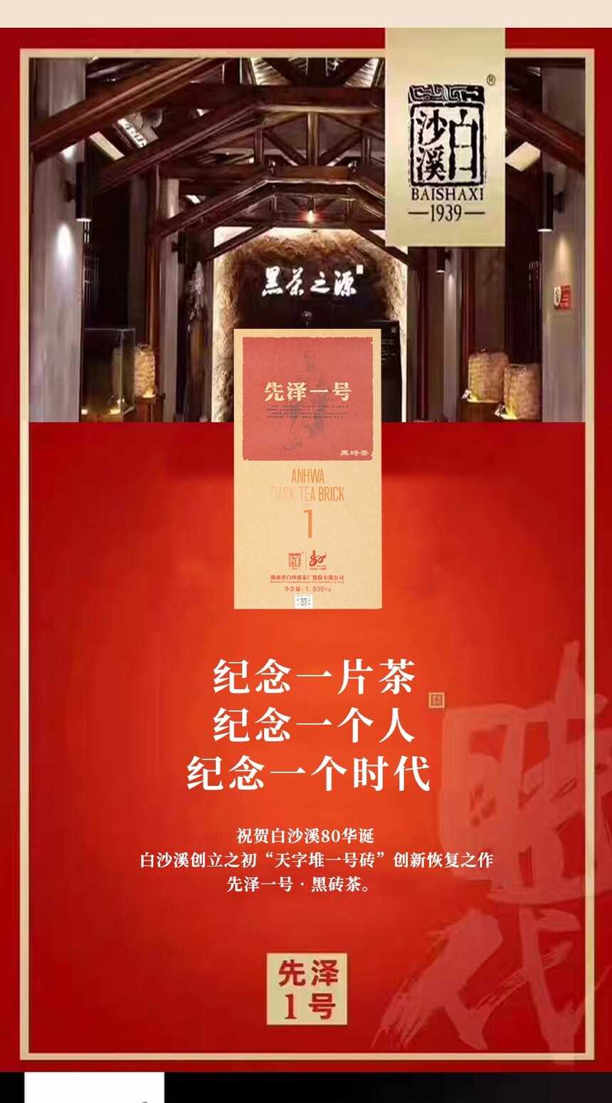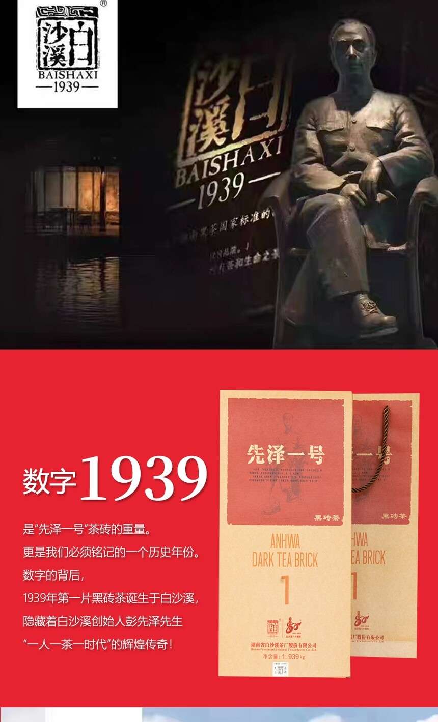 湖南安化正宗黑茶白沙溪獲磚先澤一號黑茶1.939kg盒
