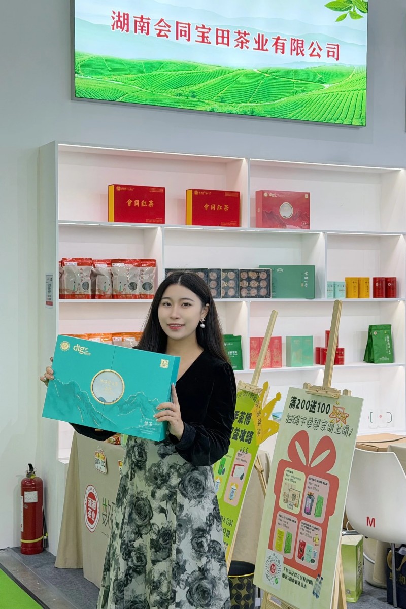 整個(gè)展位像個(gè)“湘茶小集市”:年輕人愛扎堆的茶守藝在這兒,能試喝湖南茉莉奶茶,茶禮五折起,冰激凌第二支半價(jià),玩投茶游戲還能贏茶香薰;旁邊湖南茶葉博物館很適合慢慢看,答茶題換文創(chuàng)扇、胸章,試喝國色天香紅茶,順便漲知識(shí)。