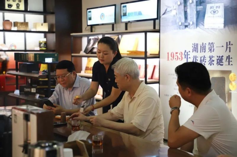 最后,考察組來到白沙溪黑茶體驗中心品飲白沙溪黑茶,并就黑茶如何做到認可度更大、競爭力更強、品牌更響,從品質提升等方面與劉新安進行了深入的交流與探討。劉新安從五方面闡述安化黑茶未來市場潛力巨大:安化黑茶是中國六大茶類中唯一被政府管控的茶類,具有獨特的健康屬性,是“富貴病”的克星,是21世紀人類健康之飲。且黑茶價格實在、實惠、好喝。近年,安化黑茶高質量發(fā)展,原料越來越好,品類越來越多,工藝水平大幅提升。安化黑茶從邊銷轉入內銷、外銷、邊銷并舉時代,品牌是靠品質決定的。張綱對此十分贊賞。