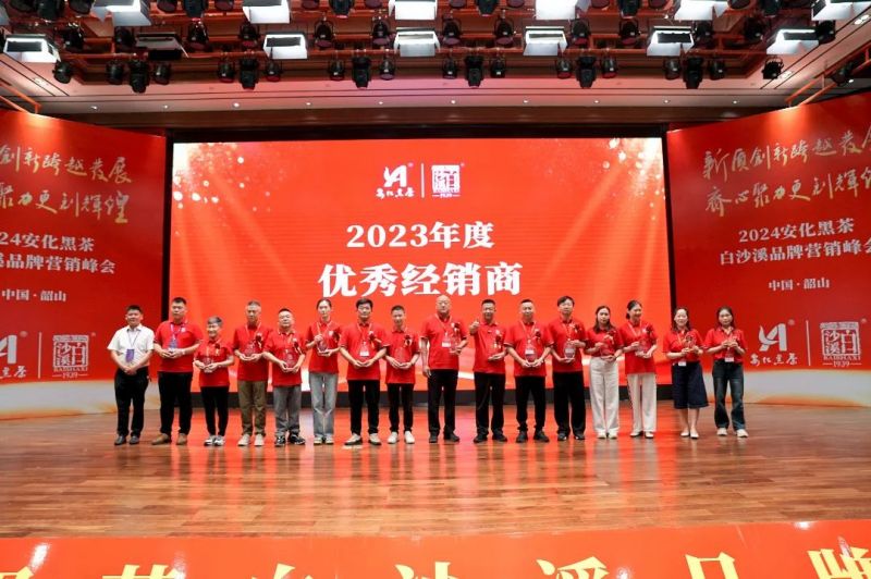 白沙溪副總經(jīng)理劉輝宣讀《白沙溪2023年度優(yōu)秀經(jīng)銷商表彰決定》,湖南將軍茯茶業(yè)有限公司、廣州市永利昌茶葉有限公司榮獲“2023年度戰(zhàn)略合作伙伴獎(jiǎng)”;湖南省新茗星茶業(yè)有限公司、廣州演通貿(mào)易有限公司、青海省茶業(yè)有限公司榮獲“2023年度卓越營(yíng)銷獎(jiǎng)”;湖南伍愛創(chuàng)意文化科技有限公司、杭州白沙溪電子商務(wù)有限公司、湖南天胤貿(mào)易有限公司榮獲“2023年拓展創(chuàng)新獎(jiǎng)”;湖南省嫩香靈茶業(yè)有限公司等30家單位榮獲“2023年度優(yōu)秀經(jīng)銷商”稱號(hào)。