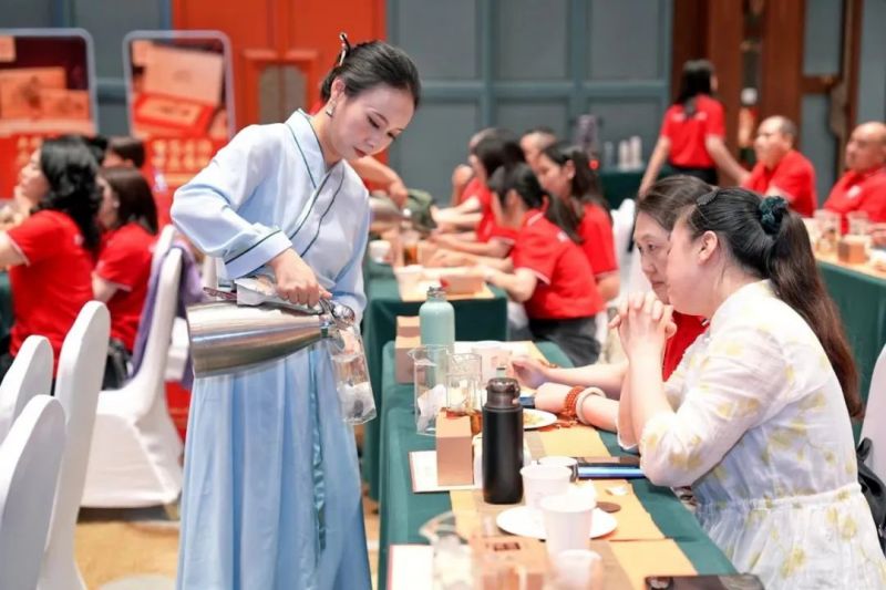 下午,在一場(chǎng)激蕩人心、紅色飛揚(yáng)的白沙溪情景劇《生生不息》中,白沙溪“大師莊園”子品牌推介與白沙溪2024新品發(fā)布重磅開啟。原湖南省軍區(qū)醫(yī)院院長(zhǎng)李典富作《中醫(yī)與黑茶健康交流分享》;白沙溪副總經(jīng)理張嶺苓作白沙溪“大師莊園”子品牌推介;湖南農(nóng)業(yè)大學(xué)教授、國務(wù)院特殊津貼專家、國家教育部茶學(xué)重點(diǎn)實(shí)驗(yàn)室主任黃建安對(duì)大師莊園系列新品作專業(yè)點(diǎn)評(píng);中國制茶大師、湖南省政府特殊津貼專家、白沙溪首席專家肖益平與嘉賓互動(dòng)交流。白沙溪2024新品營(yíng)銷政策發(fā)布,一直備受矚目和期待的大師莊園·甲辰茯茶、大師莊園·天尖餅與陳皮千兩餅3款新品重磅亮相,尤其是大師莊園茶因其極致的稀缺性、獨(dú)特的高端品質(zhì),成為本次活動(dòng)會(huì)場(chǎng)的明星產(chǎn)品?,F(xiàn)場(chǎng)還特別進(jìn)行了“大師莊園品位真?zhèn)鳌辈杷嚤硌?,氣氛熱烈、高潮迭起,嘉賓們對(duì)白沙溪新品高度評(píng)價(jià),現(xiàn)場(chǎng)銷售一空。