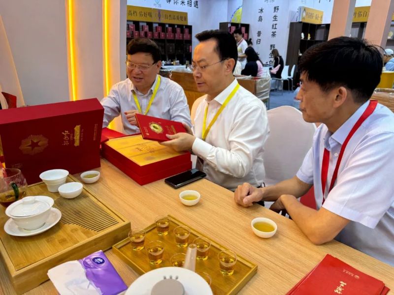 展會(huì)期間,集團(tuán)公司各單位主要負(fù)責(zé)人均到現(xiàn)場(chǎng)進(jìn)行宣傳推介和營(yíng)銷推廣,白沙溪新品“大師莊園·甲辰茯茶”、“大師莊園·甲辰天尖餅”,湘益新品“中華老字號(hào)紀(jì)念茯茶”、“龘龘茯”等重磅亮相,得到行業(yè)專家及同行的一致好評(píng);湘茶高科國(guó)家科技進(jìn)步二等獎(jiǎng)轉(zhuǎn)換產(chǎn)品“熊貓大叔生命科技小分子茶”以其降脂減肥、解酒護(hù)肝、平衡糖脂代謝等獨(dú)特的品飲功效成為展區(qū)一大亮點(diǎn);瀟湘經(jīng)典產(chǎn)品“保靖黃金茶”、茶葉博物館經(jīng)典產(chǎn)品“黃金茶1號(hào)”等贏得了眾多茶商與消費(fèi)者的喜愛(ài)與推崇;茶守藝聚焦“茶+新零售”和“茶+新中式”,為大家?guī)?lái)了“暴打油金花黑茶”、“湖南有好茶”系列茶產(chǎn)品等,吸引了廣大市民及眾多茶客前來(lái)打卡品茗。集團(tuán)公司展位高朋滿座,第二十屆中央候補(bǔ)委員、中國(guó)工程院院士、湖南師范大學(xué)黨委副書記、校長(zhǎng)劉仲華也親臨展位,品鑒了集團(tuán)公司此次展出的茶葉產(chǎn)品并給予高度評(píng)價(jià)。
