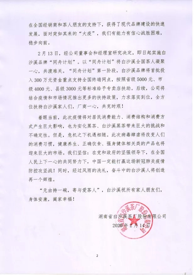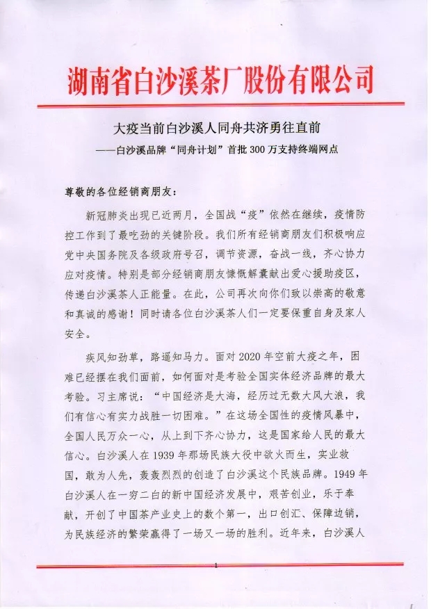 白沙溪品牌“同舟計(jì)劃”首批300萬(wàn)支持終端網(wǎng)點(diǎn)