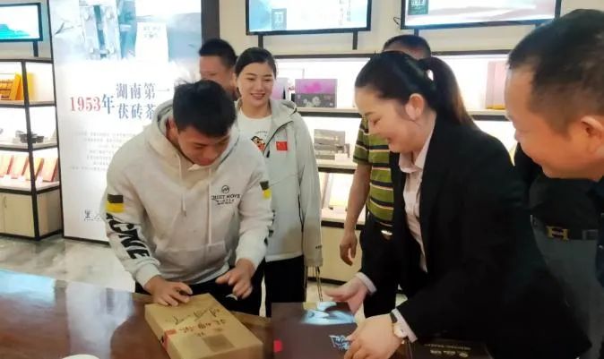 奧運(yùn)冠軍諶利軍在講解員的帶領(lǐng)下參觀(guān)了白沙溪黑茶文化博物館、了解安化黑茶名片白沙溪品牌故事文化。接著參觀(guān)了千兩茶晾曬場(chǎng)、沿江風(fēng)光帶、白沙溪文化長(zhǎng)廊、白沙溪古茶園、白沙溪茶碼頭。在千兩茶晾曬場(chǎng),興致地為白沙溪千兩茶簽名,隨后在黑茶體驗(yàn)中心進(jìn)行了簡(jiǎn)短的座談交流。