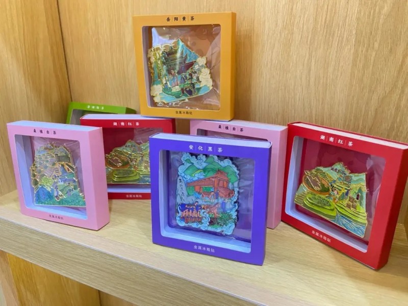 最吸睛的是一套茶文化冰箱貼:立春款印著采茶竹籃,立秋款畫著黑茶渥堆場景,每個冰箱貼背面都有二維碼,掃碼就能看對應的節(jié)氣茶俗視頻?!斑@是把千兩茶制作技藝這些非遺,變成年輕人愿意帶回家的小物件?!辈┪镳^工作人員一邊擺貨架一邊說。這些帶著湖湘茶韻的文創(chuàng),不僅好看,更成了茶文化的“移動宣傳員”,不少茶友一買就是一套。