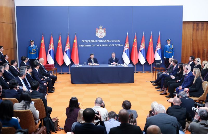 習(xí)近平指出,2016年我對(duì)塞爾維亞進(jìn)行國(guó)事訪問(wèn),受到塞爾維亞領(lǐng)導(dǎo)人和人民的熱情接待,令我至今難忘。時(shí)隔8年再次到訪,我很高興看到,在武契奇總統(tǒng)領(lǐng)導(dǎo)下,塞爾維亞經(jīng)濟(jì)社會(huì)蓬勃發(fā)展,綜合國(guó)力和國(guó)際地位顯著提高,人民生活水平不斷提升。中國(guó)和塞爾維亞是真朋友、好伙伴,兩國(guó)政治互信堅(jiān)如磐石,務(wù)實(shí)合作提質(zhì)升級(jí),多邊協(xié)調(diào)密切順暢,鐵桿友誼歷久彌新。