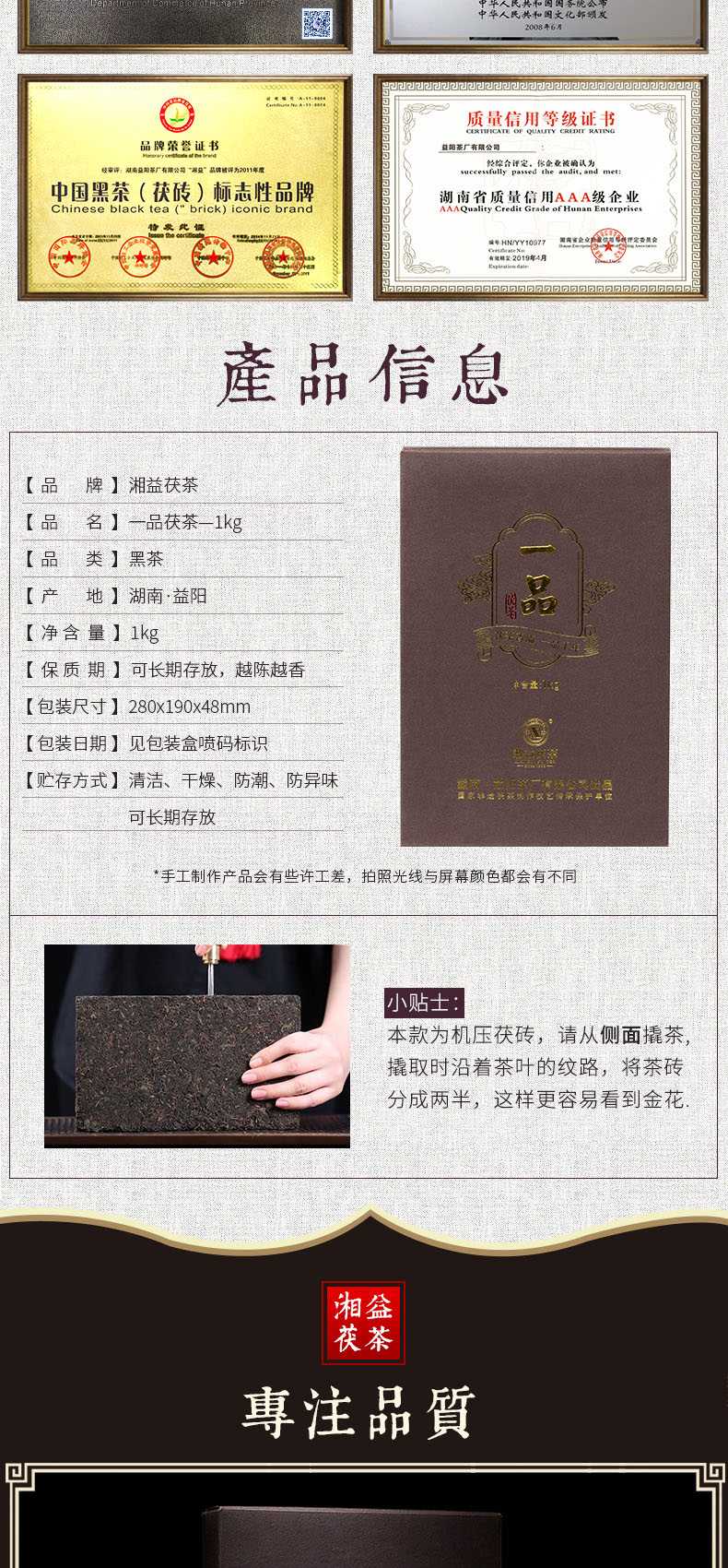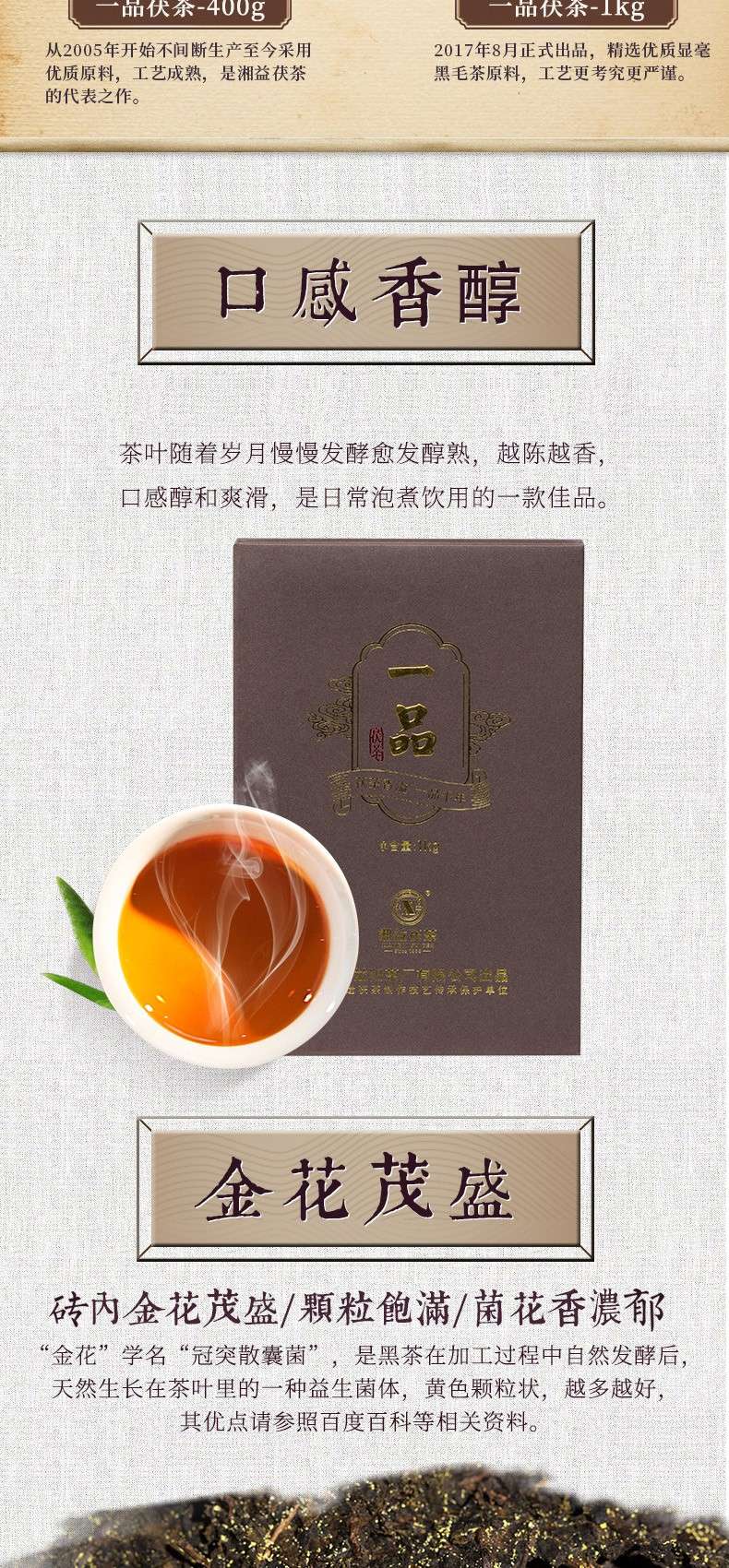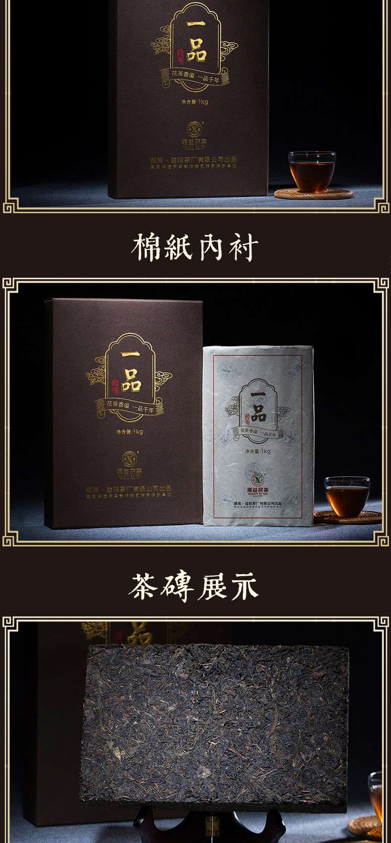 • 湘益獲茶湖南安化黑茶獲磚金花一品獲茶1kg益陽茶廠