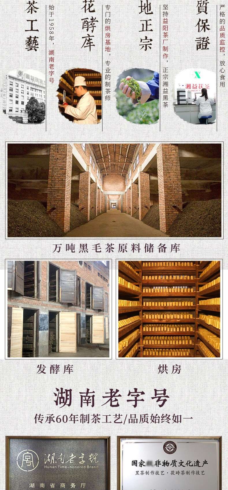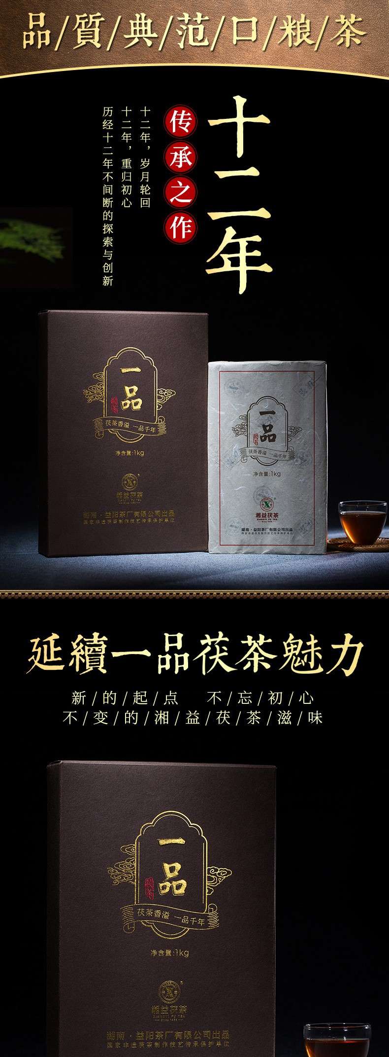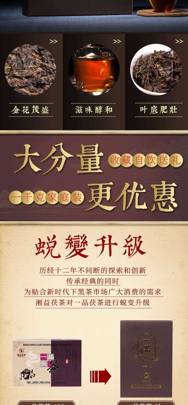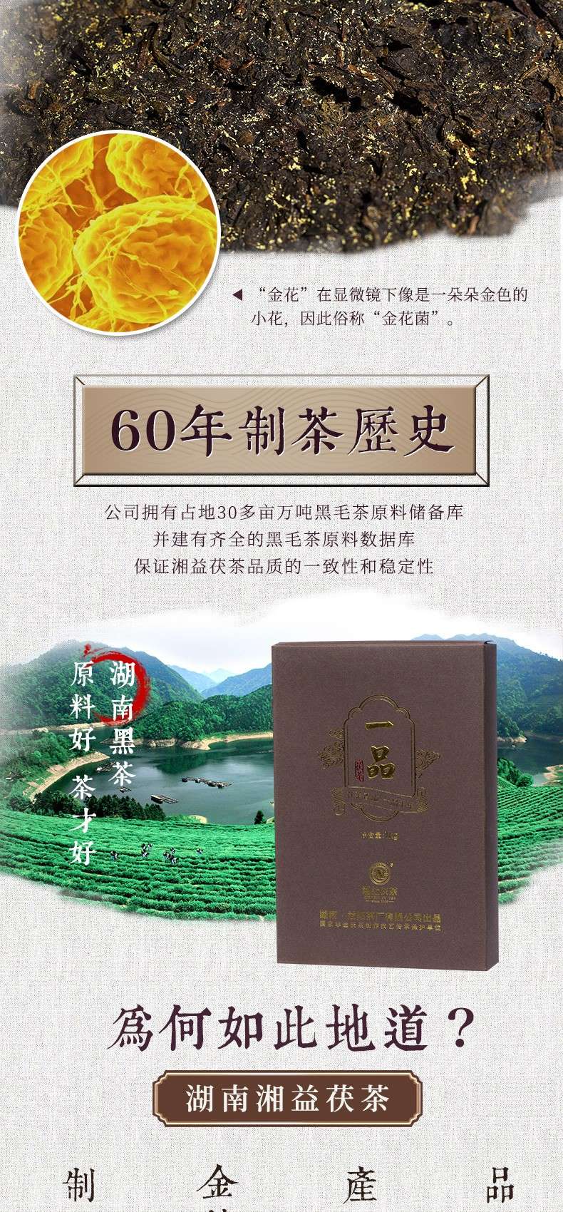 • 湘益獲茶湖南安化黑茶獲磚金花一品獲茶1kg益陽茶廠