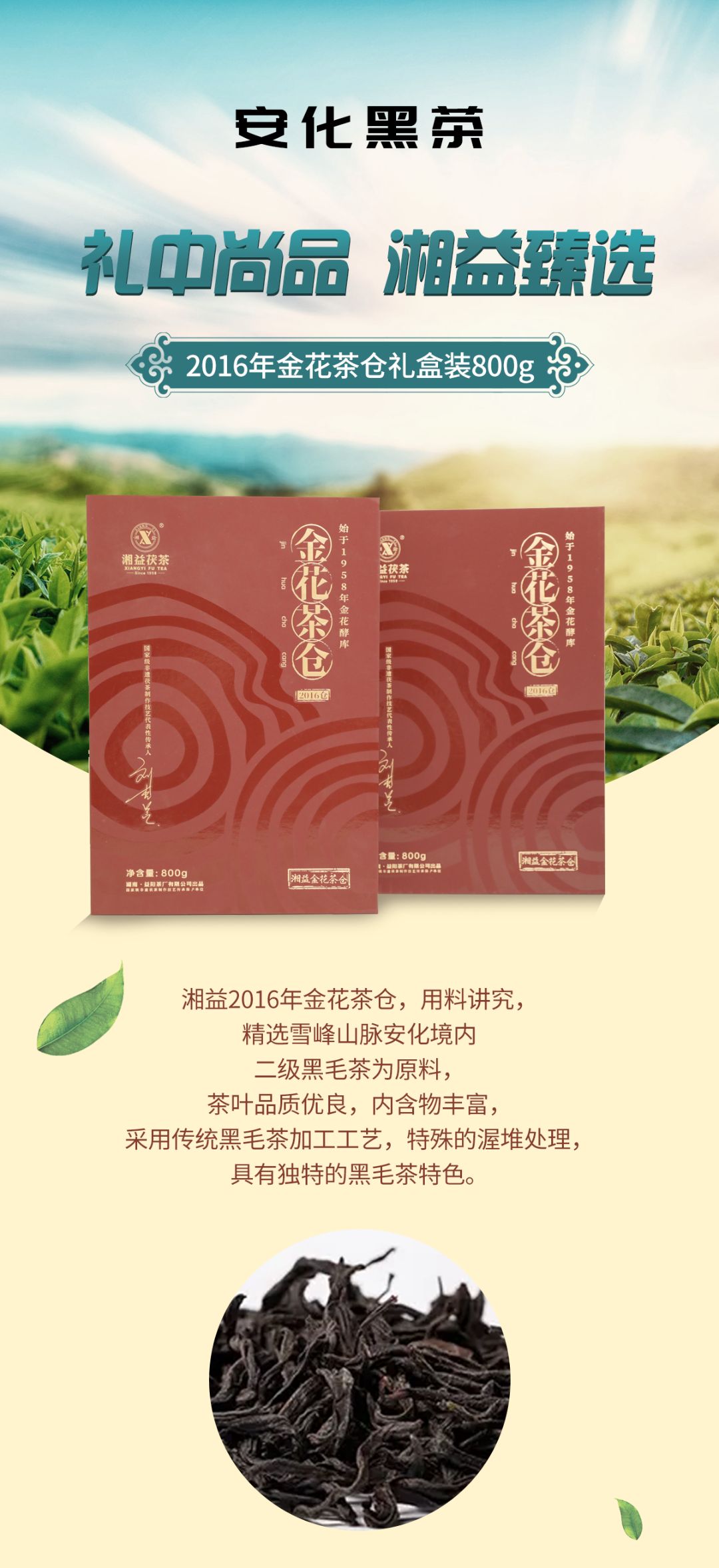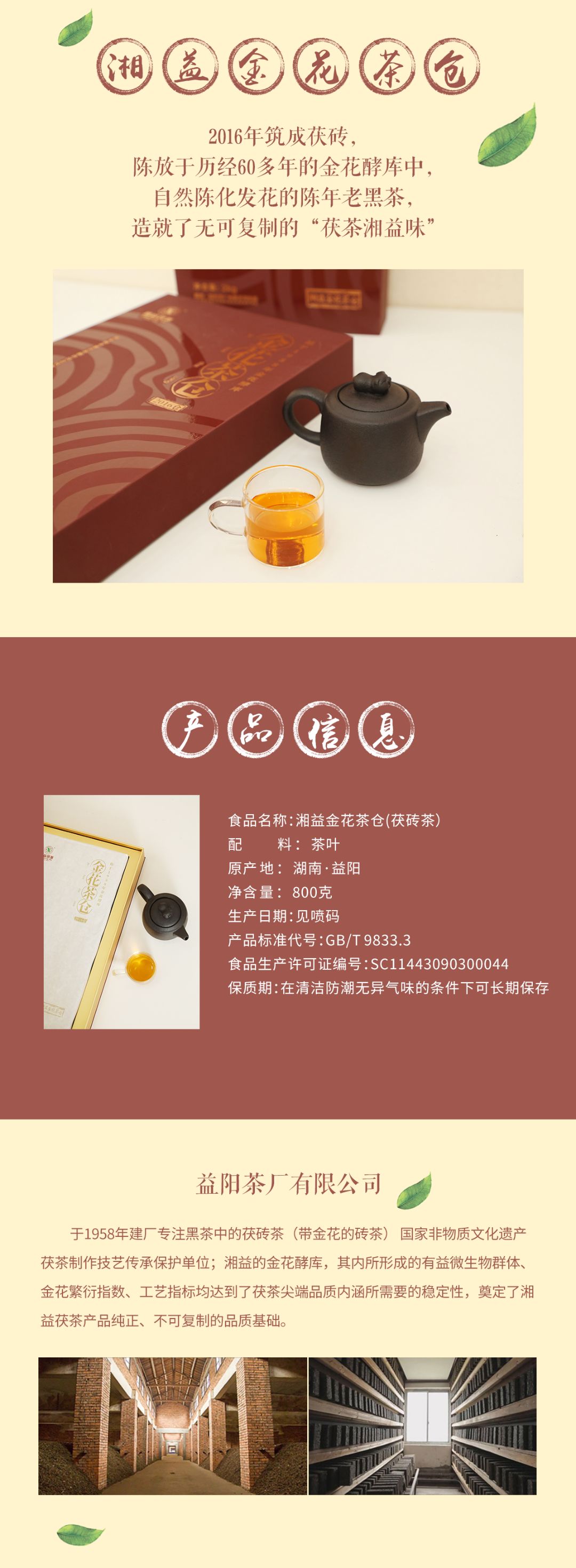 湘益金花茶倉(cāng)2016茯磚茶800g