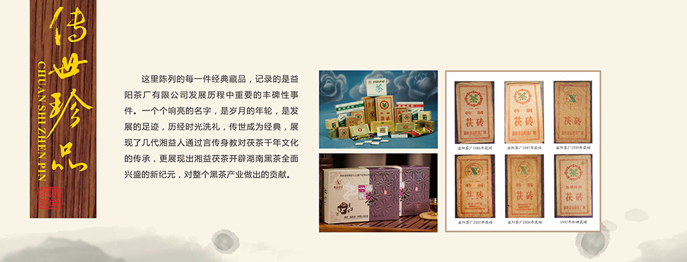 這里陳列的每一件經(jīng)典藏品,記錄的是益陽(yáng)茶廠有限公司發(fā)展歷程重要的豐碑性事件,一個(gè)個(gè)響亮的名字,是歲月的年輪,是發(fā)展的足跡,歷經(jīng)時(shí)光洗禮,傳世成為經(jīng)典,展現(xiàn)了幾代湘益人通過(guò)言傳身教對(duì)茯茶千年文化的傳承,更展現(xiàn)出湘益茯茶開(kāi)辟湖南黑茶全面興盛的新紀(jì)元,對(duì)整個(gè)黑茶產(chǎn)業(yè)做出的貢獻(xiàn)。